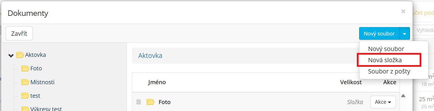 modul Nemovitost->Správa->Dokumenty