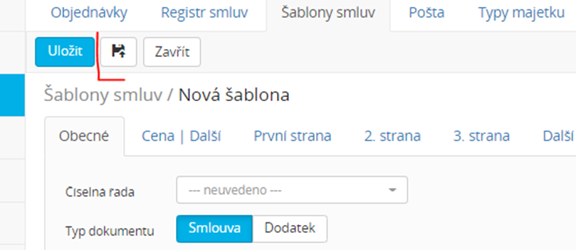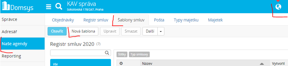 Šablony vytvoříte v modulu Správce-Naše agendy-Šablony smluv
